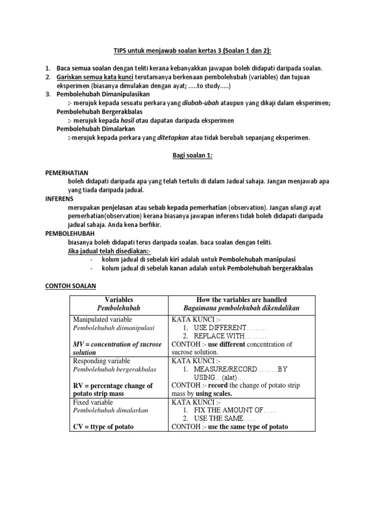 Contoh Soalan Subjektif Sains Tingkatan 1 Bab 3